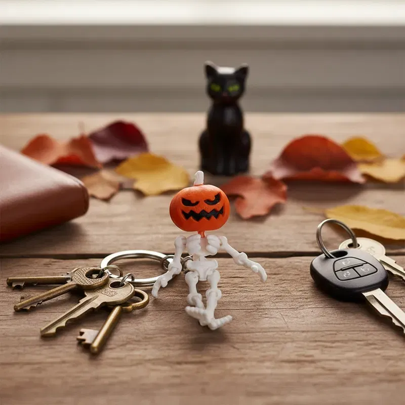 LLAVERO ESQUELETO CALABAZA ARTICULADO IMPRESION 3D