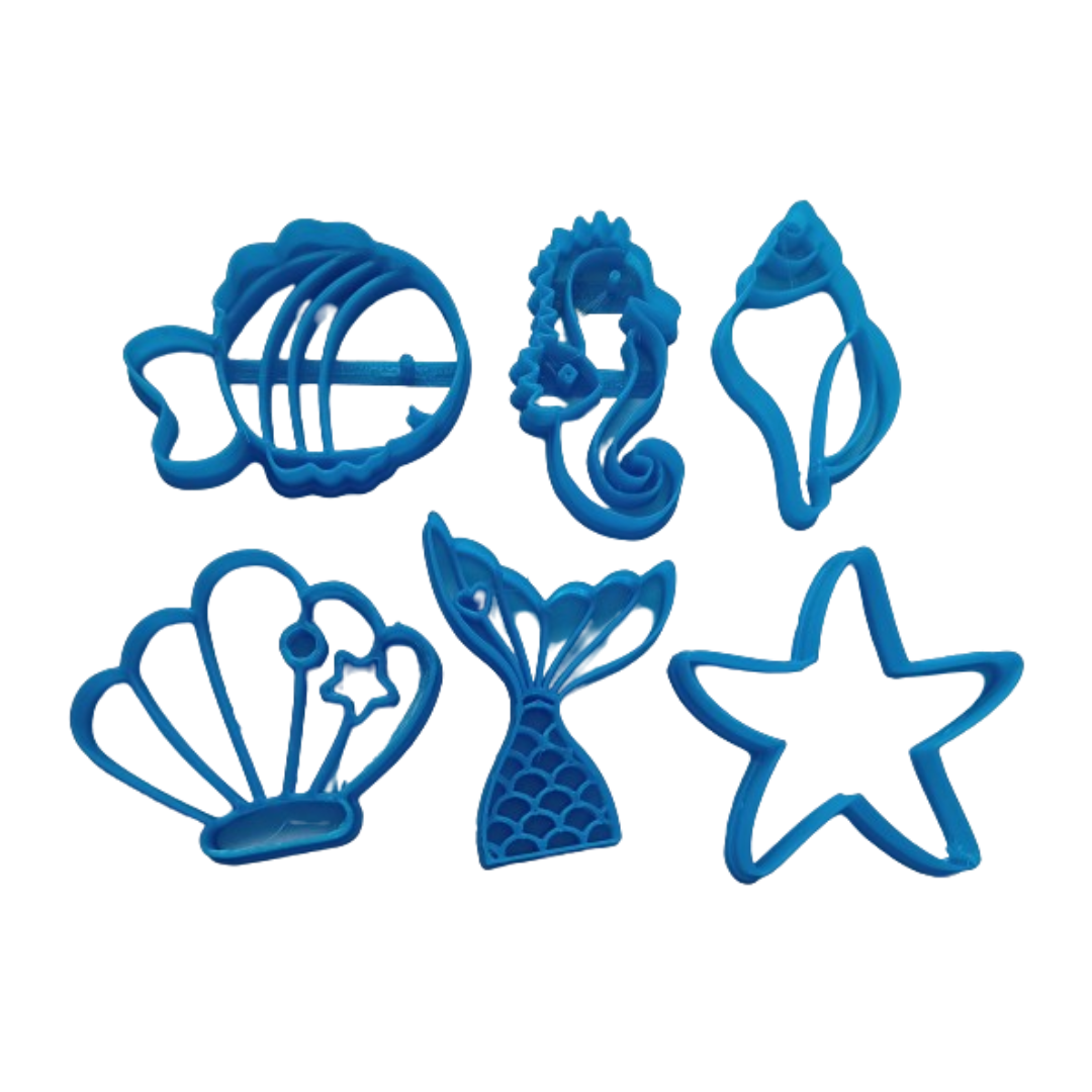 ESTOS CORTANTES SON IDEALES PARA HACER GALLETAS, PASTELES Y DECORACIONES CON TEMÁTICA MARINA. SU DISEÑO EN IMPRESIÓN 3D GARANTIZA UNA GRAN PRECISIÓN EN LOS DETALLES, PERMITIÉNDOTE OBTENER RESULTADOS SORPRENDENTES.