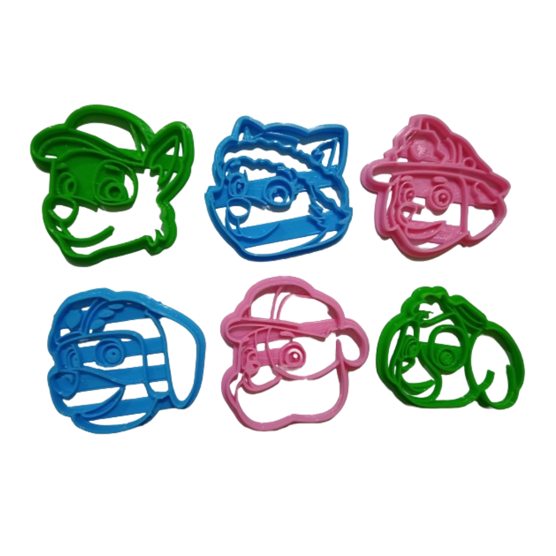 SI ERES FANÁTICO DE LA SERIE PAW PATROL Y TE ENCANTA LA REPOSTERÍA, ESTOS MOLDES CORTANTES DE PERSONAJES SON PERFECTOS PARA TI. CON UN DISEÑO EN IMPRESIÓN 3D, ESTOS MOLDES TE PERMITIRÁN CREAR GALLETAS Y DECORACIONES CON LA FORMA DE LOS ADORABLES PERROS DE LA PATRULLA CANINA.