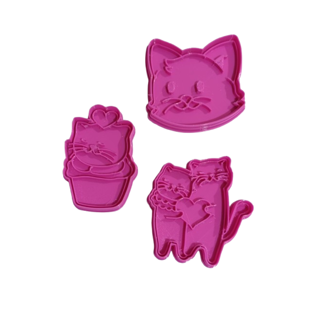 GATITOS AMOR CORTANTES Y MARCADORES PACK 3 PIEZAS IMPRESION 3D