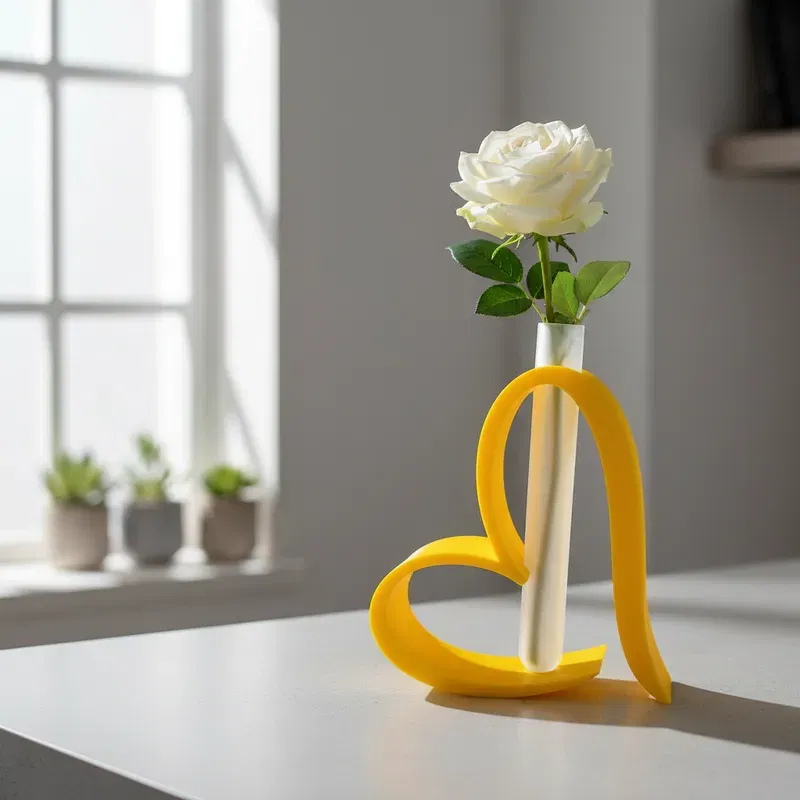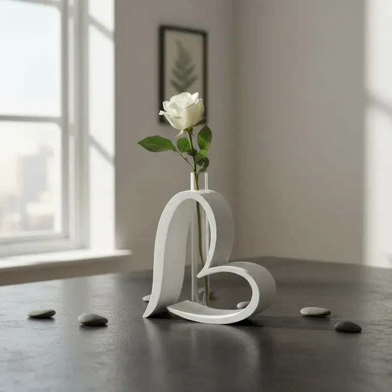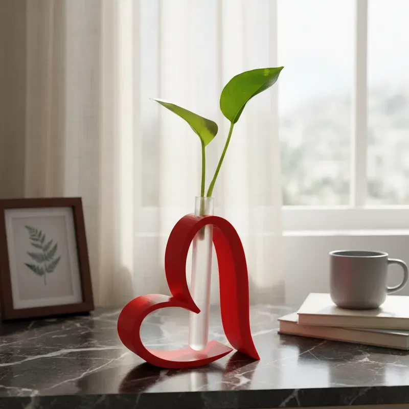 FLORERO JARRON EN FORMA DE CORAZON CON TUBO DE ENSAYO IMPRESION 3D
